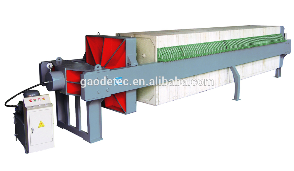 - Filter press consist of frame ,filter plate ,pressing system(manual , mechanical or hydraulic ) and electric control cabinet .