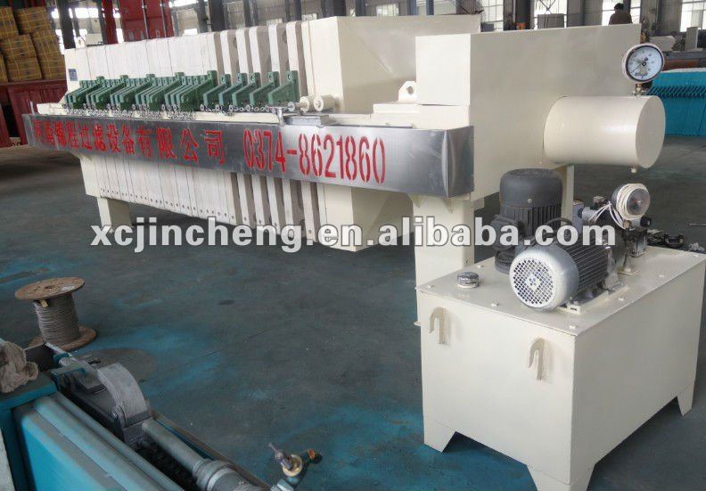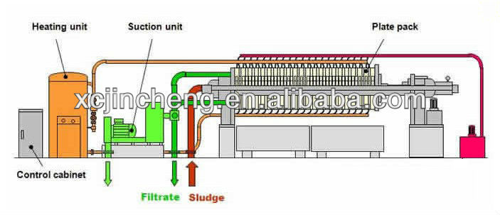 Under the action of the pressure of the feed pump, the material and the liquid are sent into each filter chamber, and the solid and the liquid are separated by the filter medium filter cloth. A filter residue is formed on the filter cloth until the filter chamber is filled to form a cake.