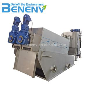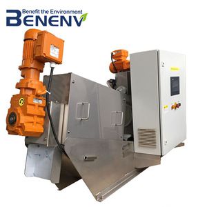 Multi-Disk Screw Press( Hereinafter referred as MDS ) belongs to the screw press, it's clog-free and can reduce the sedimentation tank and sludge thickening tank, saving the cost of sewage plant construction. MDS using screw and the moving rings to clean itself as clog-free structure, and controlled by the PLC automatically, it's a new technology that can replace the traditional filter press like belt press and frame press, the screw speed is very low, so it cost low power and water consumption in contrast to the centrifuge, it is a cutting edge sludge dewatering machine.