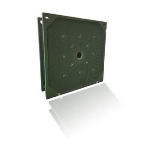 4. At work, by the clamping device (oil cylinder piston rod or wire rod) push the pressure plate, will be located in the pressure plate and the thrust plate between the filter plate and filter cloth clamp, by compression between the filter plate and filter plate to form the filter chamber, the feed pump into the material from the thrust plate feed opening into the filter chamber, solid particles trapped in the filter room, and filter cake formation, the liquid is through the filter cakes and filter cloth made from the SAP of the hole outside eduction body. If you need cleaning of filter cake, available on the transom lotion mouth pass into the washing water for cleaning filter cake. If the filter cake must be dry, wash mouth ventilation with compressed air, then blow dry cake.
