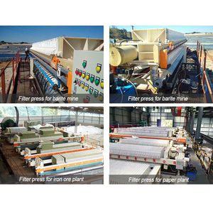 1. Filter press is composed of a frame, filter plate, pressure system (manual, hydraulic, mechanical three forms) and the electrical control cabinet.
