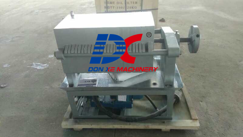 This frame oil filter is composed of filter plates, filter frames, oil pump and filter cloth, etc. When the crude oil is pumped into the filtering machine, under the different pressure in and outside the machine, the crude oil go through the filtering cloth and come out from the pipe under the filter plate, while the oil dregs remains on the surface of the filtering cloth,thus realizing the filtering process.