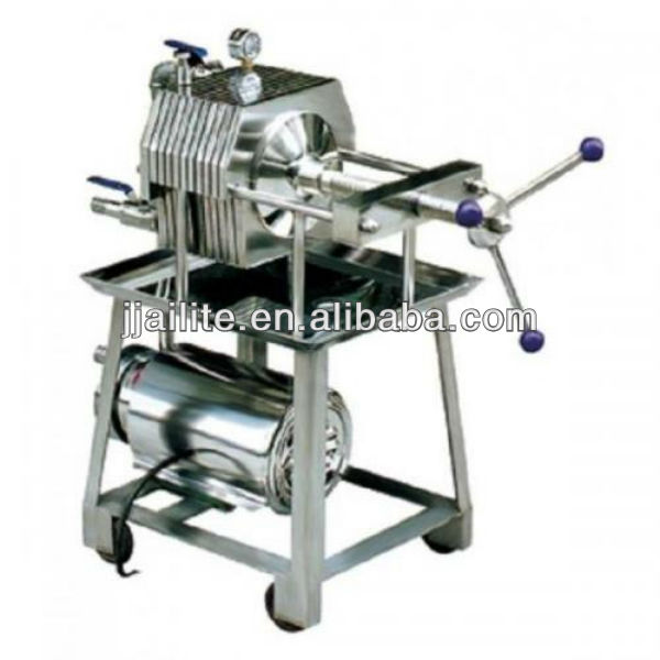 This equipment is stainless steel multilayer frame filter press for concentrations <50% low viscosity liquid with a smaller amount of slag as a closed filter to achieve purification, sterilization, clarification fine filter, semi-fine filter requirements direct selection of microporous membrane, may, without microporous membrane filter directly to the sterile filtration purposes.
