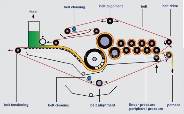 WORKING PRINCIPLE OF BELT FILTER PRESS MACHINE: