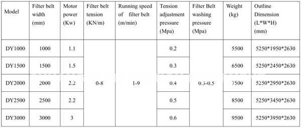 TECHNICAL PARAMETER OF BELT FILTER PRESS MACHINE: