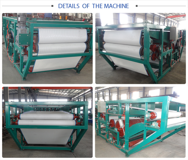 Belt filter press machine can continuously treat a large amount of sludge, which is made of high strength material. Belt filter press machine has big capacity, high efficiency dehydration, long service life and other characteristics, widely used in various industries.