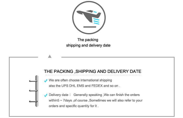 | Different products and quantities have different procedures and different timing .We may promise that we can try our best to finish all of your orders within the shortest time. For more information, please contact us directly | |