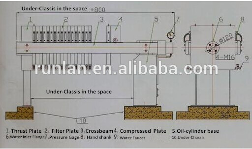 Plate-and-frame (type) filter press is a device for spasmic solid-liquid separation with plate, frame as filter room where liquid was transferred into by conveying pump, solid-liquid separation will be achieved by filter media.