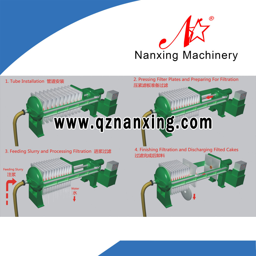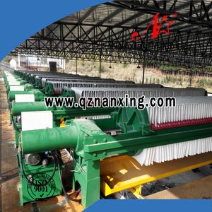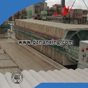 1). The piston pump transport the kaolin slurry to the filter press,the slurry through the pressure filtration and dehydration by the filter press to achieve the solid-liquid separation and then make the slurry into mud cake.