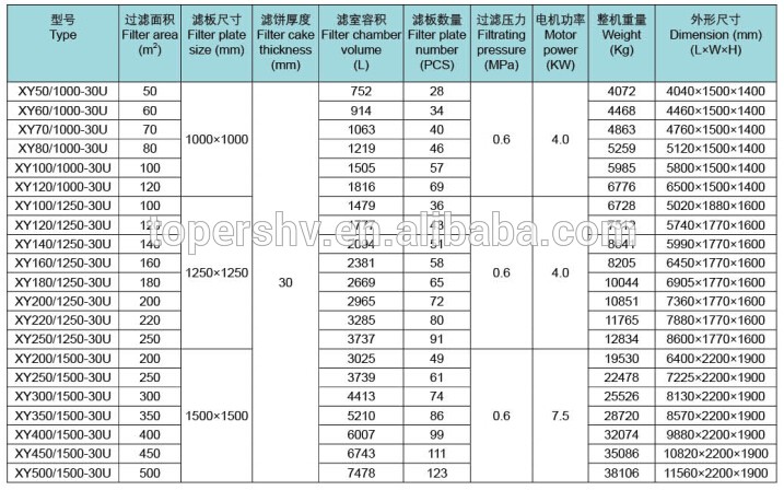 1.Select the model,plate and fram material,pressing mode and filtering form by considering the filter press introduction and parameters.