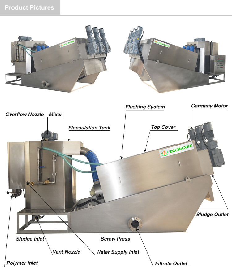 Screw type sludge dehydrator,Belt filter press,Polymer dosing machine,Mechanical bar screen,DAF