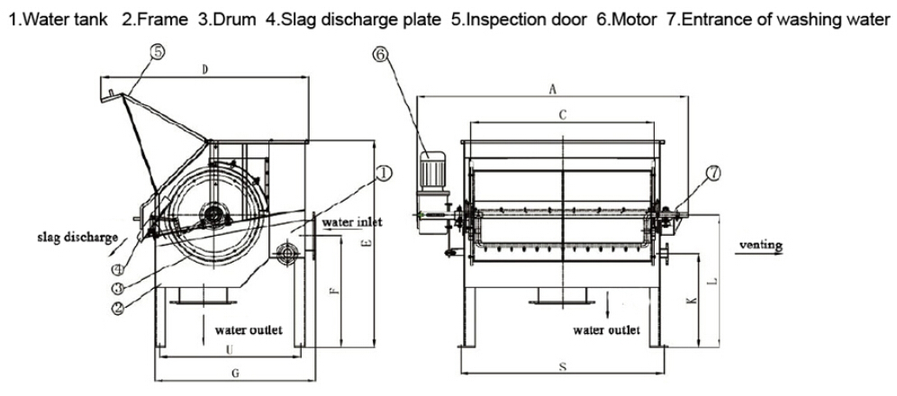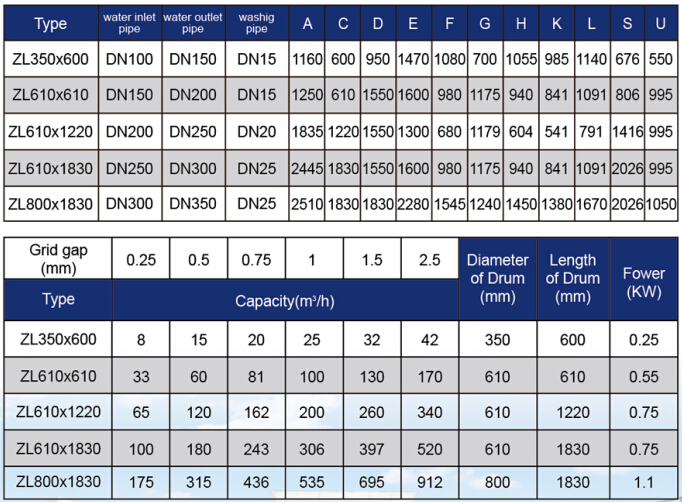 3. The surface of the drum is made of wedge grid, and has excellent hydraulic characteristics.