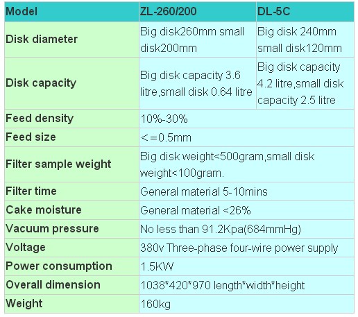Lab disk vacuum filter Specifications: