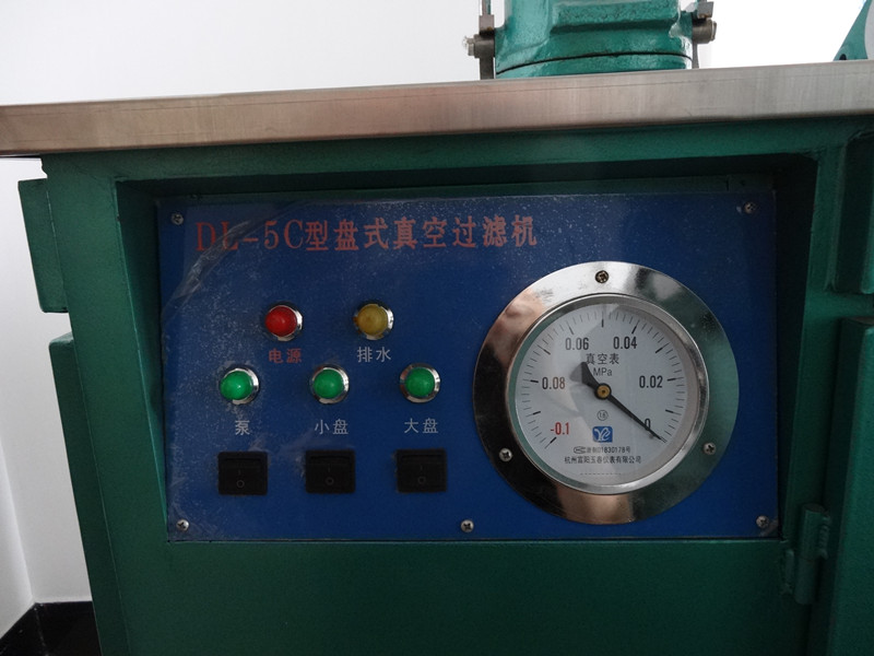 Within around 10s after the vacuum pump is started, make a vacuum capacity with the pressure of not lower than 91.2kpa (684mm mercury column) in the vacuum negative pressure jar. then connect the electromagnetic valves 3 and 5. under the action of pressure difference, the liquid in the filter disk permeates into the filter paper very quickly, so that the purpose of the dewatering can be served.
