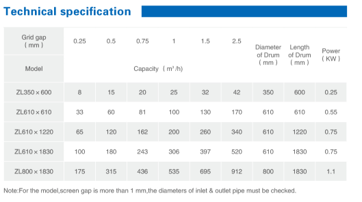 ZL model rotary drum filter is suitable for both small and medium operations with pumped influent. It’s also applied for pretreatment of municipal and other wastewater.