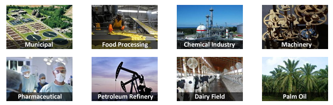 1. The screening of water from the plastics, paper, textile, tanning, laundry , milk industries and food industries etc…