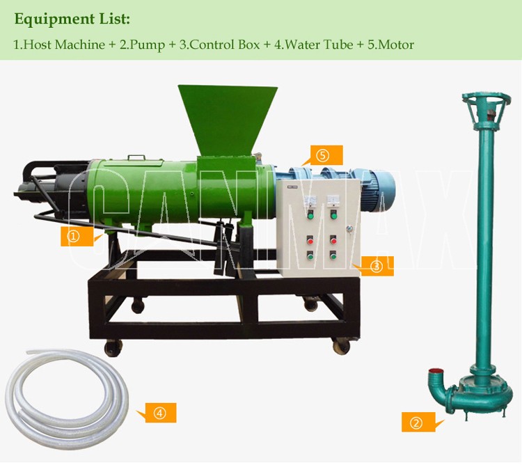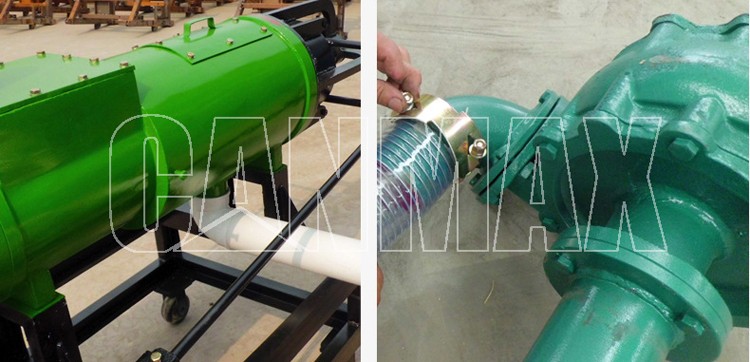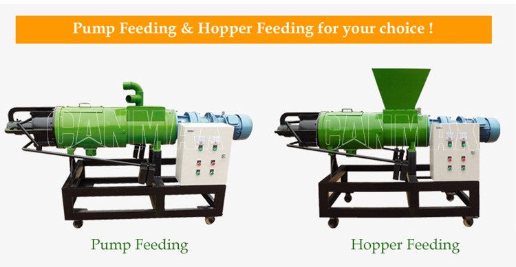 The machine use the pump to pull the fowl manure, cow dung, etc. into dewater equipment , the material through the screen and then press by the screw , the rotary speed of the machine can reach 45r/min , within the press of the screen and high rotary speed , the material will be dewatered by the machine , and the water will enter into the pool through screen.