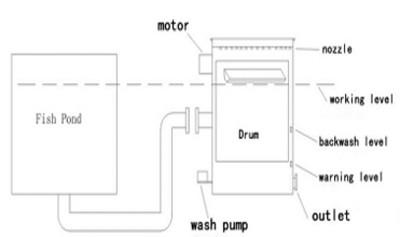 2. Fish waste water with solid matter particles enter the Drum Filter from the inside the spinning drum.