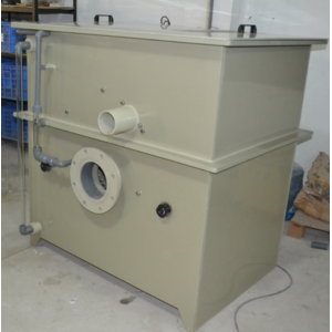5. A float level switch or timer initiates filter screen rinse that washes away solid matter to another tank where it is collected and disposed of.