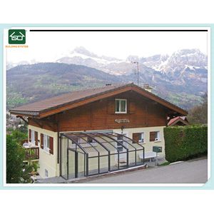 Shengcheng retractable roof system is made of aluminium profiles that never rust;The surface is finishing by anodizing or powder coating.