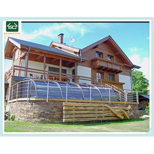 Shengcheng retractable roof system is made of aluminium profiles that never rust;The surface is finishing by anodizing or powder coating.