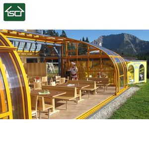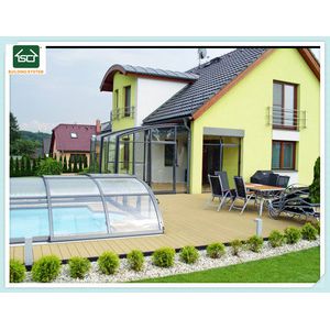 Shengcheng retractable roof system is made of aluminium profiles that never rust;The surface is finishing by anodizing or powder coating.
