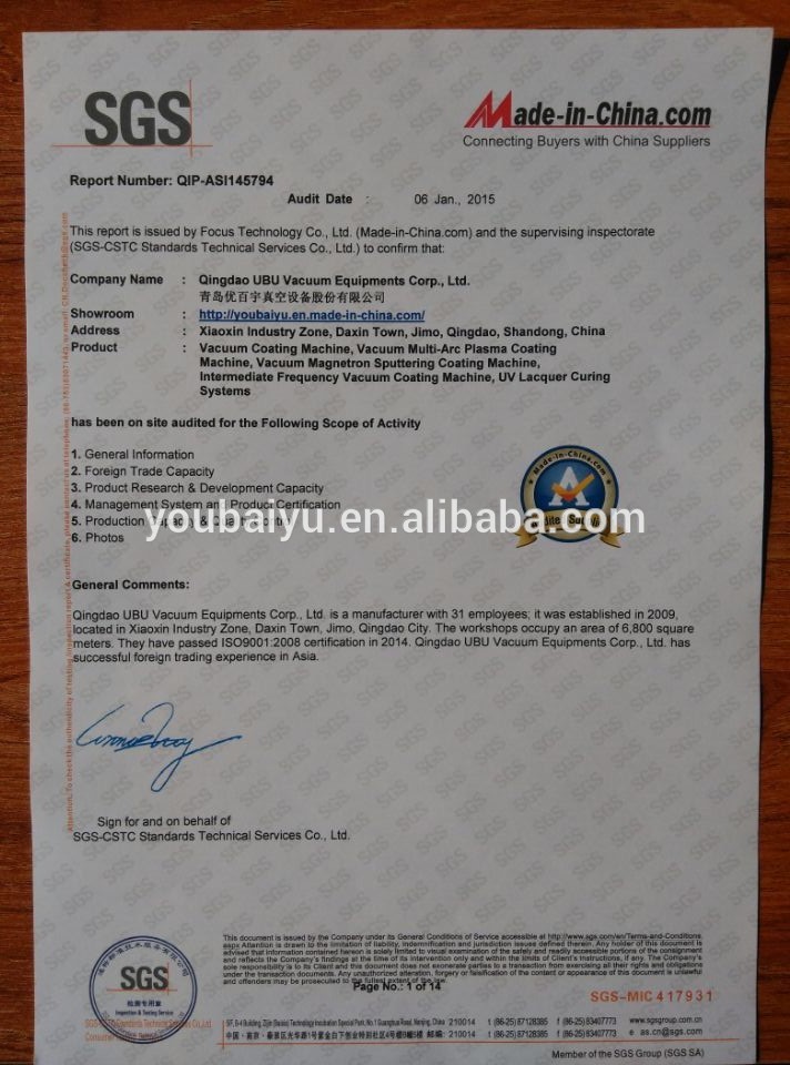 researching, manufacturing and marketing various kinds of vacuum coating equipment, and these vacuum
