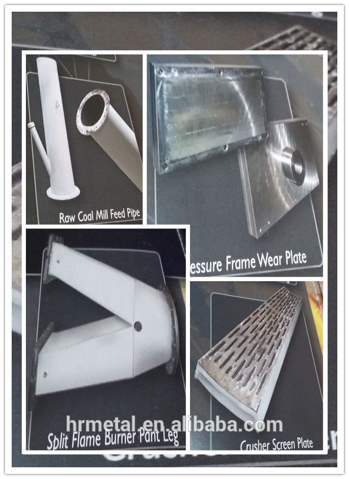 1. Power Industry: Frozen Coal Cracker, Cyclone Burner Door, Square to Round Transition, Segmented Classifier Cone, Coal Handling Flop Gate, Journal Liner, Turbo Fired Burner, T-Fired Burner Barrel, Split Flame Burner Pant Leg, Raw Coal Mill Feed Pipe, Pressure Frame Wear Plate, Crusher Screen Plate.
