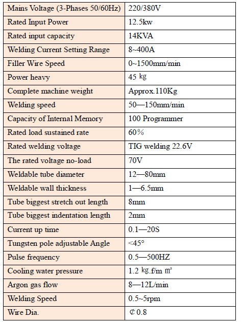 • Pipe diameter 12mm - 80mm carbon steel, alloy steel, stainless steel, aluminum, aluminum alloy, copper and copper alloy, titanium alloy, etc