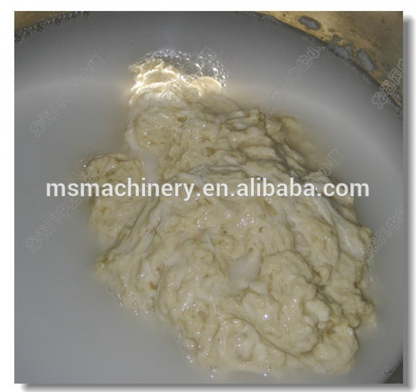 4,After 12 minutes, put 15 kg water into the hopper again,then open the machine to work about 3 minutes,then stop,let the flour batter flow through the hole of machine.