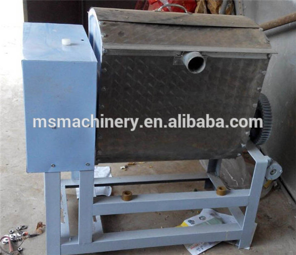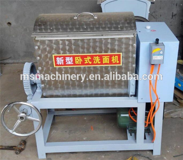 1.First,put the water into the hopper,then put the suitable flour into the hopper ,mix them together.The water and flour ratio is 0.6-0.7/1,it means ,if you want to put 25 kg flour,you need put 15kg water.