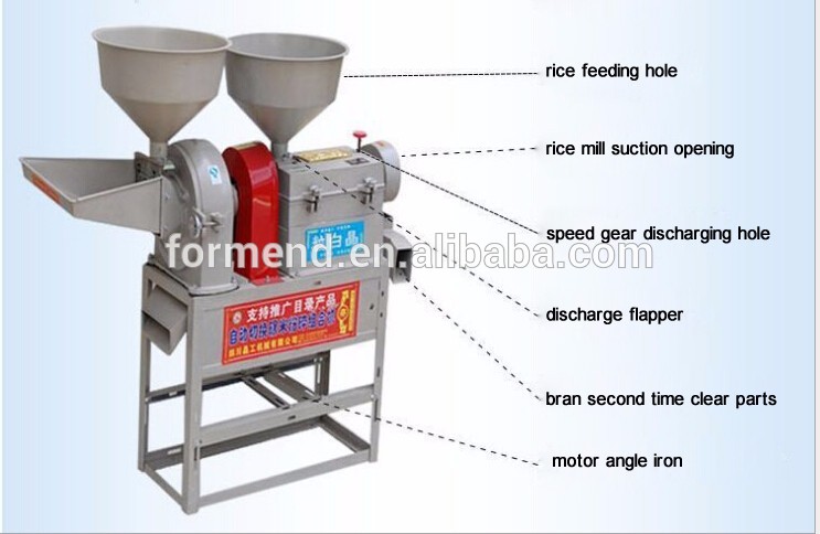 This Mini Rice Mill is consisted of four main parts: home used rice mill machine, crusher, motor and frame.The Mini Rice Mill is consisted of cover, the seat base, rice rolls, rice sieve, rice knife, input hopper, slide screen, adjusting components. Crusher mainly consists of feed hopper, crushing part and output hopper. The machine mill the paddy into rice one time, and completely separate rice, bran, broken rice at the same time.