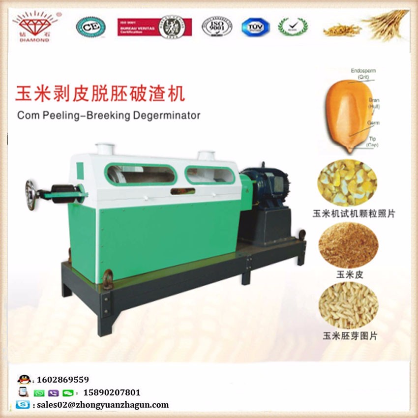 - With corn peeling, corn breaking, corn degerming together, and with low power consumption, so as to increase economic benefit of corn processing plant;