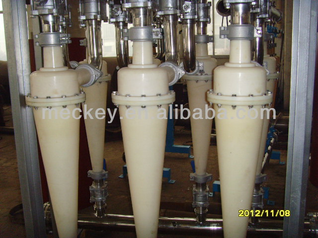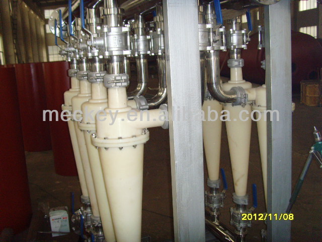 Germ cyclone is mainly applied for germ separation in corn starch production. It features in neat design, conpact structure and high degermination efficiency. It is usually connected in series or parallel to meet the different procedures.