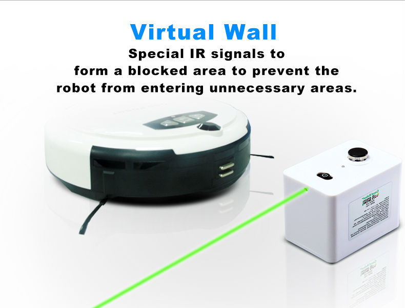 7. Virtual Wall: It sends some special IR signals to form a blocked area to prevent the robot from entering unnecessary areas.