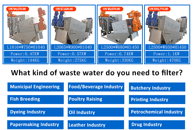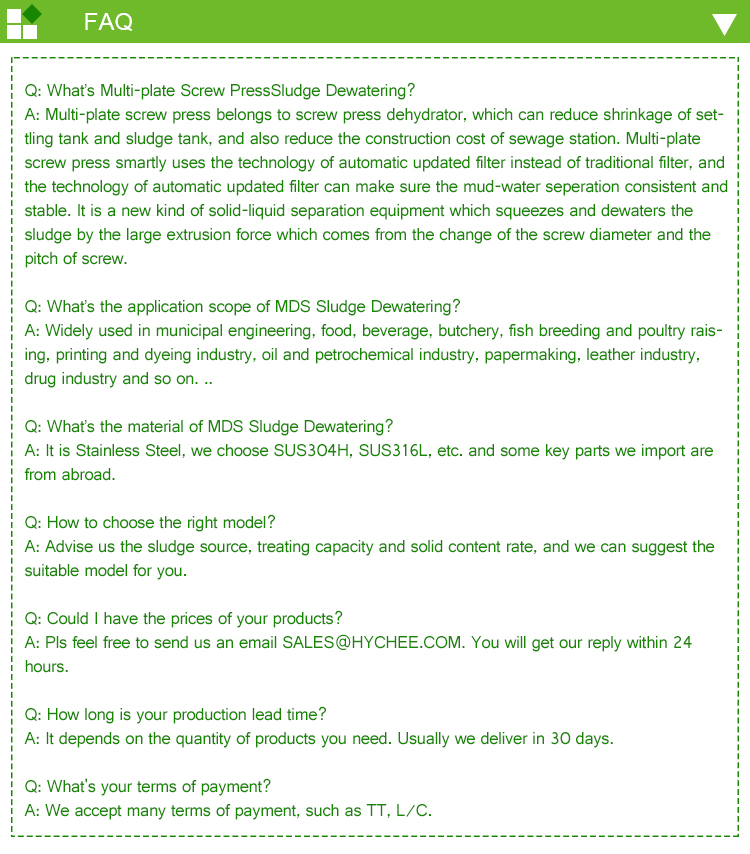 | Model | DS(Dry Sluge) Standard Processing Capacity | Machine Dimension (L*W*H)(mm) | Machine Net Weight(kg) | Motor Power (kw) | |