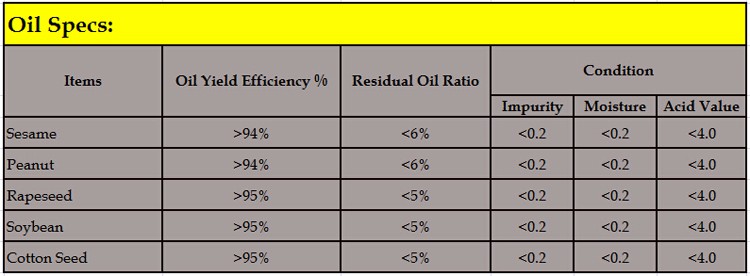 7. Raw Material: It is multifunctional, all the oil corps on the market can be processed.