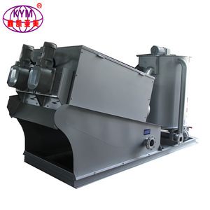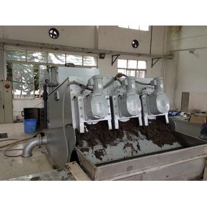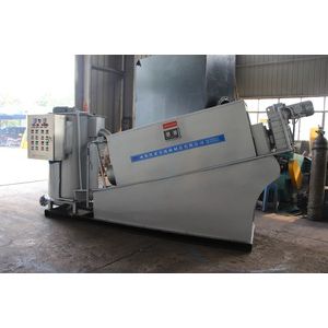 Stainless steel screw type sludge dewatering machine( Hereinafter referred as ES ) belongs to the screw press, it's clog-free and can reduce the sedimentation tank and sludge thickening tank, saving the cost of sewage plant construction. ES using screw and the moving rings to clean itself as clog-free structure, and controlled by the PLC automatically, it's a new technology that can replace the traditional filter press like belt press and frame press, the screw speed is very low, so it cost low power and water consumption in contrast to the centrifuge, it is a cutting edge sludge dewatering machine.