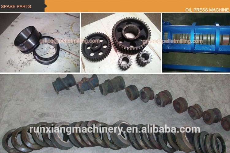 When oil presses operating prepared material enters extruding chamber from the hopper and then moves forwards by the rotating pressing screw and is pressed. Under the high-pressure condition in the chamber ,friction between material and screw ,between material and chamber will be created ,which also creates friction and relative movement among material particles. On the other hand, root diameter of the pressing screw caries larger from one end to the other ,hence. When rotating ,it not only pushes particles moving forwards but turns them outwards as well,meanwhile ,particles adjacent the screw will rotate along with screw’ rotating ,causing every particle inside the chamber to possess different speed. Therefore relative movement among particle creates heat which is necessary during manufacturing because of helping protein change property ,damage colloid ,increase plasticity ,decrease oil’s elasticity ,resulting in high oil productivity.