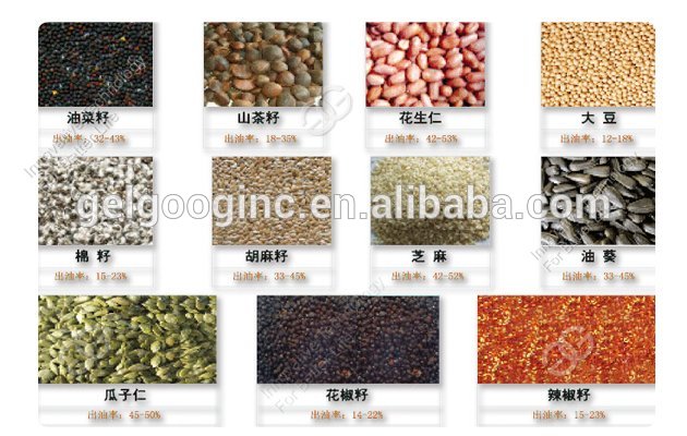 Answer:suitable for rapeseed, peanut, soybean, sunflower, rapeseed, sesame, sesame seed, tea seed, walnut, olive, corn germ, rice bran, tea seed, safflower seed, seeds of hippophae rhamnoides, neem seed, rubber seed, pepper seeds, tomato seeds, watermelon seeds, grape seeds, flax seed, evening primrose, pepper seeds, Castor seeds, Citrus Seeds, beans, beans, almonds, Coffee perilla, peach, rose fruit oil plants.