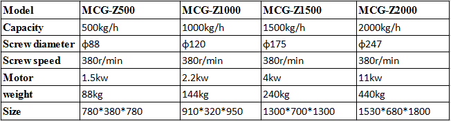 The main component of the device is the spiral. The spiral along the slag exit direction, the bottom diameter gradually increased and the pitch gradually reduced, when the material is pushed by the spiral, due to the spiral cavity volume reduction, the formation will press the material.