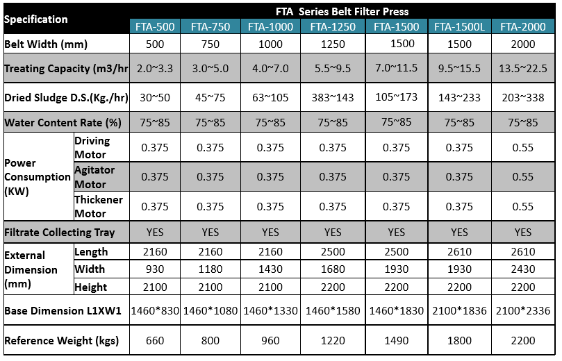 Belt filter press specification
