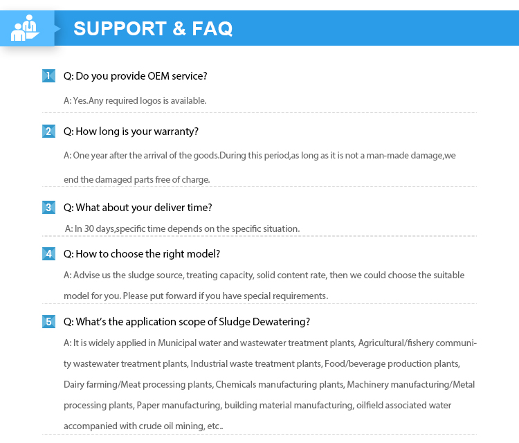 6,The above models are our standard models. We can tailor products according to customer requirements and sludge properties. For details, please contact us.