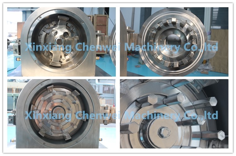 The machine is made up of feeding material part and crush part, and dust collect part. Its coniguration is very briefness, all the parts which contact the material are made of stainless steel.