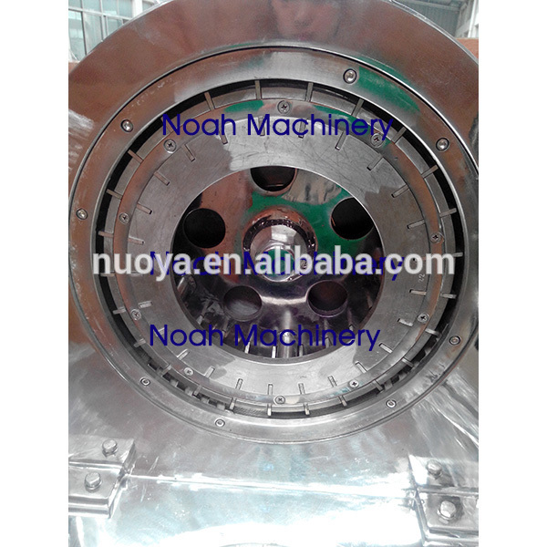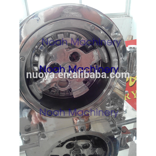 Its pulverizer and duster are all made of qualified stainless steel. Its inner wall of the housing is smooth and level being processed through superior technology.Therefore it can make the powder discharging more flowing and is benefit to the work of clean too. The gear disk of high speed and movable teeth are welded through special welding, it makes the teeth is durable, safety and reliable. The machine is in conformity with the requirements of GMP.Through balance test of gear disk with high speed .It is proved that even if this machine is rotated at high speed. It is stable and no vibration during the period of ordinary operation. Being adapted the interlock apparatus between gear disk with high speed and driving shaft, it is complete reliable in operation.