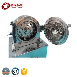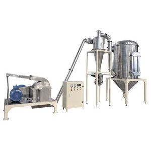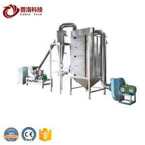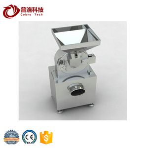 The pin mill pulverizer consist of hopper,fixed discs,rotating discs,motor,dust collector (optional),control box and other related parts.It makes use of the high speed relative movement of the movable fixed disc and the rotating disc to crush the materials through the comprehensive effect of striking and friction of the fluted disc as well as the mutual striking of the materials.the crushed material can be discharged directly from the grinding chamber of the machine and the desired granule size can be obtained by installing screens with different apertures.Besides,the whole machine is made of stainless steel.The inner surface of the enclosure becomes smooth through processing,thus changing the powder residual phenomenon due to the coarse inner surface of the previous models.As a result,the production of medicine,food and chemical products can better conform to the national standard and the GMP requirement.