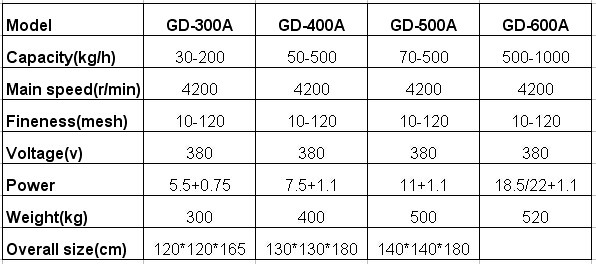 The machine adopts the high-speed spinning blade of wind wheel and stationary knife. It has advantages of low noise, light vibration and no dust flying in the course of production.