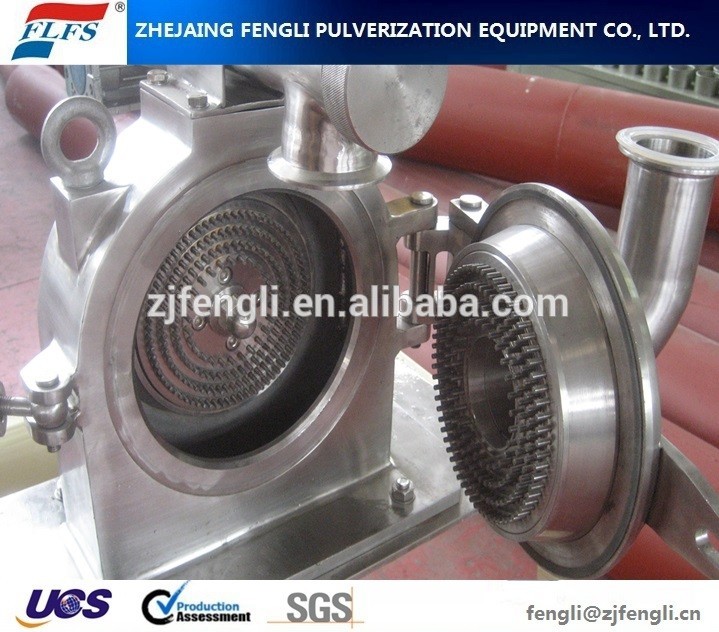 It’s milling zone is consist of rotary pins and static pins. Particles hit these pins and get split. Particles can get abundant times of hit because there are several rows of pins. The rotary pins can suck airs to reduce the heat generated by friction. There is a air sealing device to protect bearing keep clean.