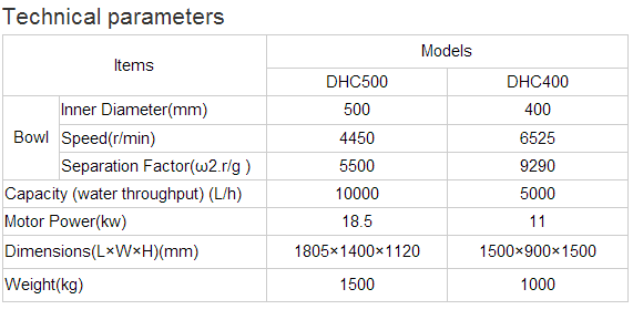Disc Stack Centrifuges is mainly used for liquid-solid separation for the material with solids content between 1% ~10% and the diameter of solid particles is bigger than 0.5μm. This machine has strong separation capability, and the separation factor is 9250. It can be operated manually,automatically and remotely. It is simple in structure and easy in maintenance.