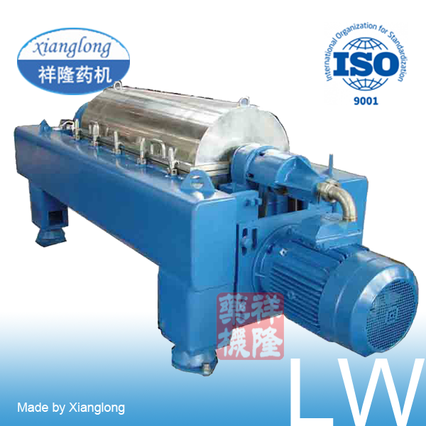 The bowl is driven by the motor through the friction clutch and screw gear pair and rotate at high speed around the mainshaft.Stock liquid flows from the center charging inlet on the top of separator to the bottom through the charging pipe and then passes through disc seats to the space of the bowl.The bigger gravity solid phase particles in the stock liquid is settled down to the bowl's wall under the action of the centrifugal force and drained out from the residue under the control of the side bowl,the liquid phase is fully settled down to the center along the discs and drained out by the centripetal pump.
